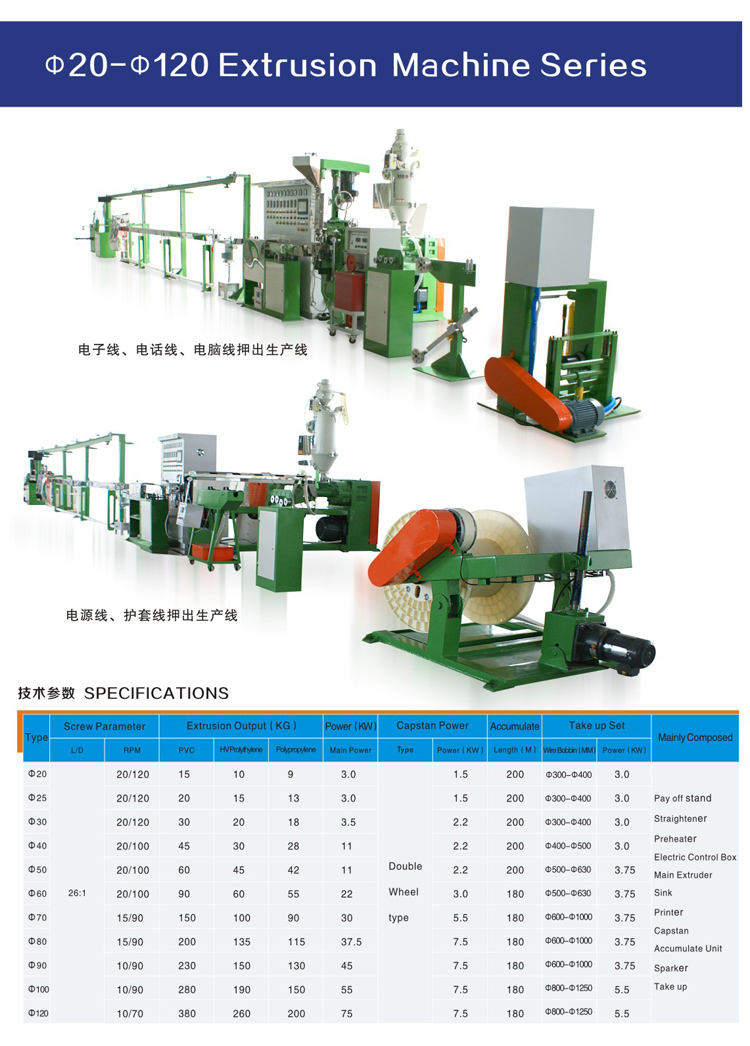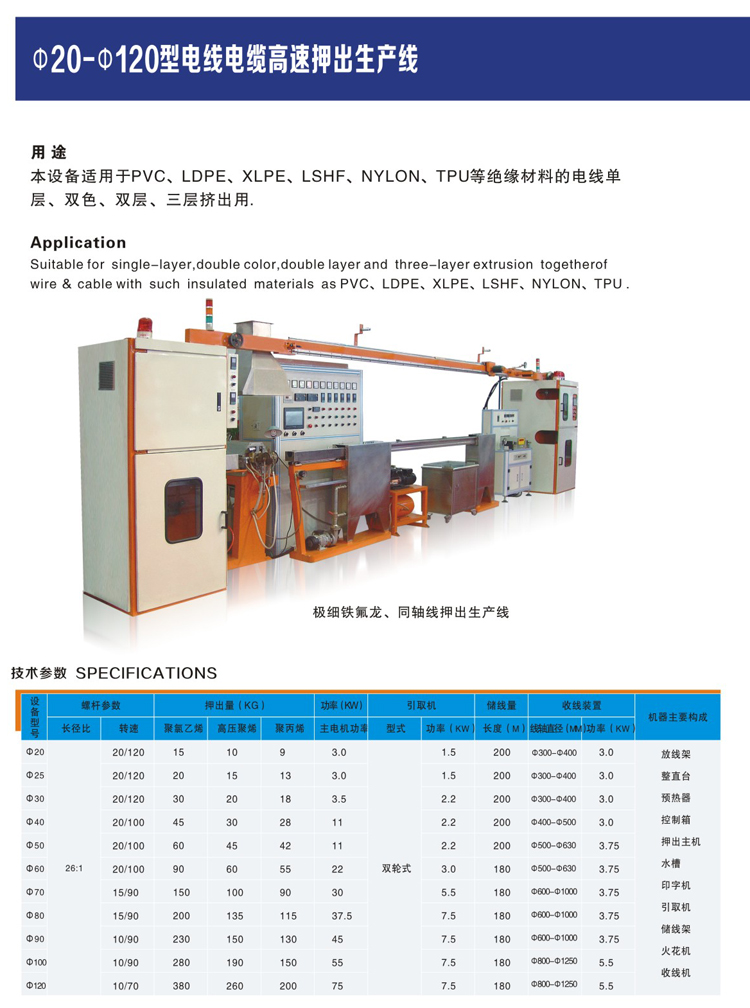 主營產(chǎn)品:懸臂單絞機,成纜機,高速絞線機,銅線束絲機,雙絞機,對絞機,三倍絞線機,退扭機,芯線集合機,管絞機,框絞機,電線押出機,高速押出機,物理發(fā)泡同軸電纜、數(shù)據(jù)電纜三層工擠生產(chǎn)線,光纖押出機,硅膠線生產(chǎn)線,鐵氟龍押出出生產(chǎn)線,電力電纜生產(chǎn)線,電子線押出機,電源線押出機,