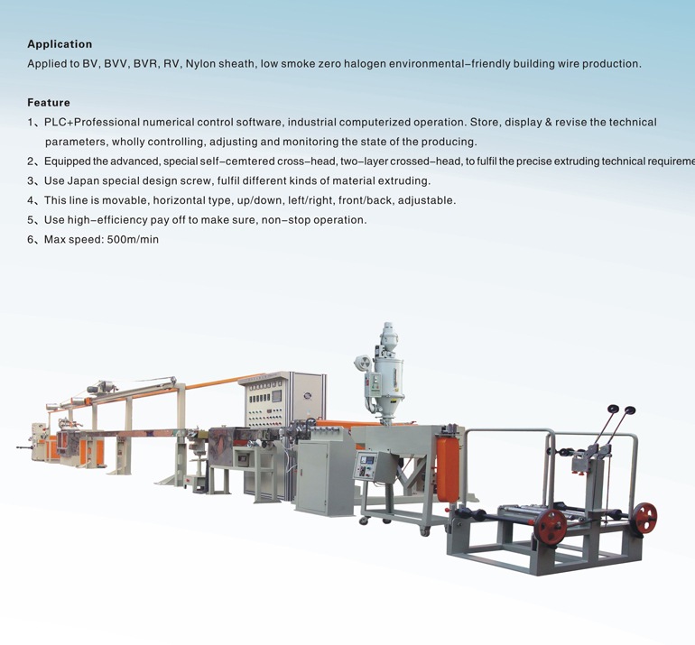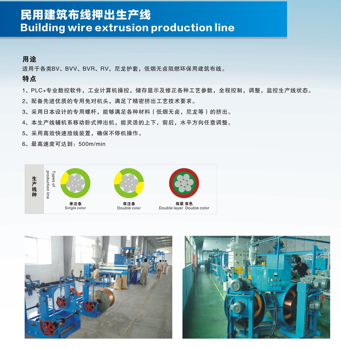 主營產(chǎn)品:懸臂單絞機(jī),成纜機(jī),高速絞線機(jī),銅線束絲機(jī),雙絞機(jī),對絞機(jī),三倍絞線機(jī),退扭機(jī),芯線集合機(jī),管絞機(jī),框絞機(jī),電線押出機(jī),高速押出機(jī),物理發(fā)泡同軸電纜、數(shù)據(jù)電纜三層工擠生產(chǎn)線,光纖押出機(jī),硅膠線生產(chǎn)線,鐵氟龍押出出生產(chǎn)線,電力電纜生產(chǎn)線,電子線押出機(jī),電源線押出機(jī),
