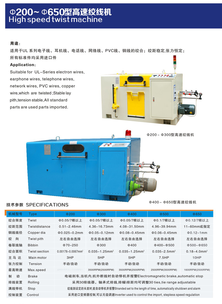 主營產(chǎn)品:懸臂單絞機(jī),成纜機(jī),高速絞線機(jī),銅線束絲機(jī),雙絞機(jī),對絞機(jī),三倍絞線機(jī),退扭機(jī),芯線集合機(jī),管絞機(jī),框絞機(jī),電線押出機(jī),高速押出機(jī),物理發(fā)泡同軸電纜、數(shù)據(jù)電纜三層工擠生產(chǎn)線,光纖押出機(jī),硅膠線生產(chǎn)線,鐵氟龍押出出生產(chǎn)線,電力電纜生產(chǎn)線,電子線押出機(jī),電源線押出機(jī),