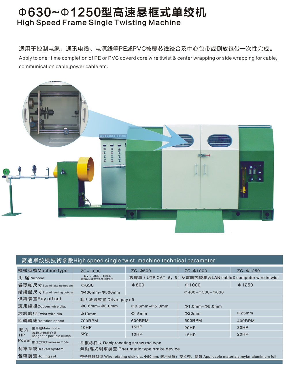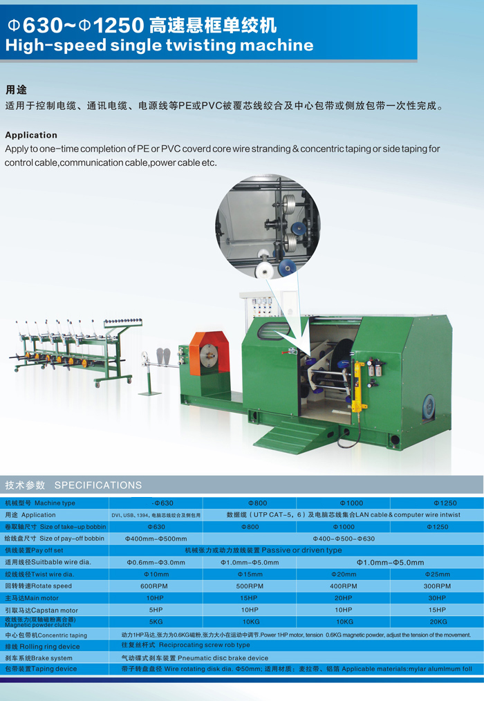 主營產品:懸臂單絞機,成纜機,高速絞線機,銅線束絲機,雙絞機,對絞機,三倍絞線機,退扭機,芯線集合機,管絞機,框絞機,電線押出機,高速押出機,物理發(fā)泡同軸電纜、數據電纜三層工擠生產線,光纖押出機,硅膠線生產線,鐵氟龍押出出生產線,電力電纜生產線,電子線押出機,電源線押出機,