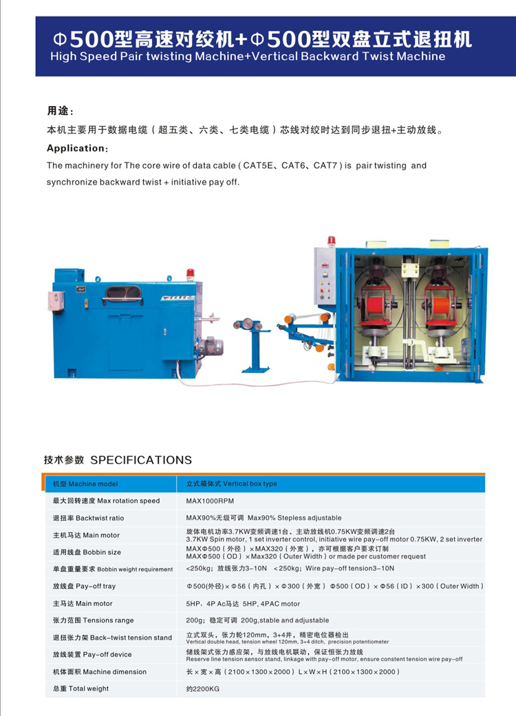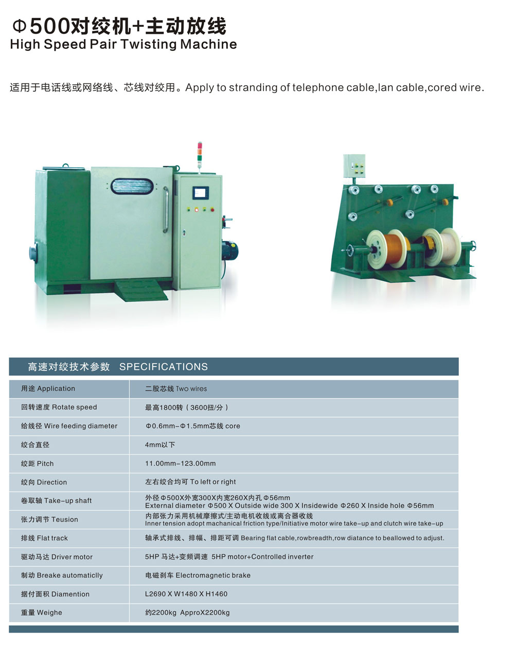 主營產(chǎn)品:懸臂單絞機,成纜機,高速絞線機,銅線束絲機,雙絞機,對絞機,三倍絞線機,退扭機,芯線集合機,管絞機,框絞機,電線押出機,高速押出機,物理發(fā)泡同軸電纜、數(shù)據(jù)電纜三層工擠生產(chǎn)線,光纖押出機,硅膠線生產(chǎn)線,鐵氟龍押出出生產(chǎn)線,電力電纜生產(chǎn)線,電子線押出機,電源線押出機,