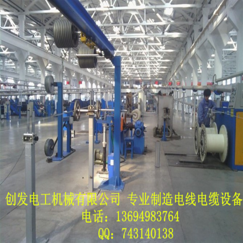 由大軸放線架(PN1600-2000)、120主機、主控電箱、2.5米活動水槽、16米冷卻水槽、1600履帶牽引機、火花機、收線機(200-2500)大軸收線機。